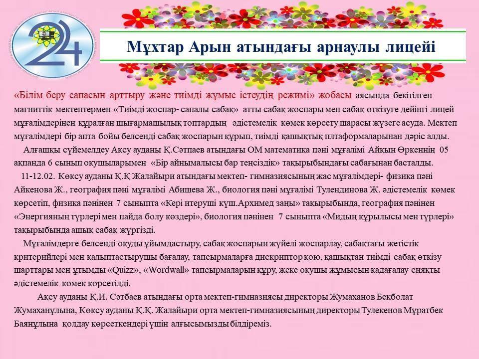 "Мұхтар Арын атындағы №24 мамандандырылған лицейі"