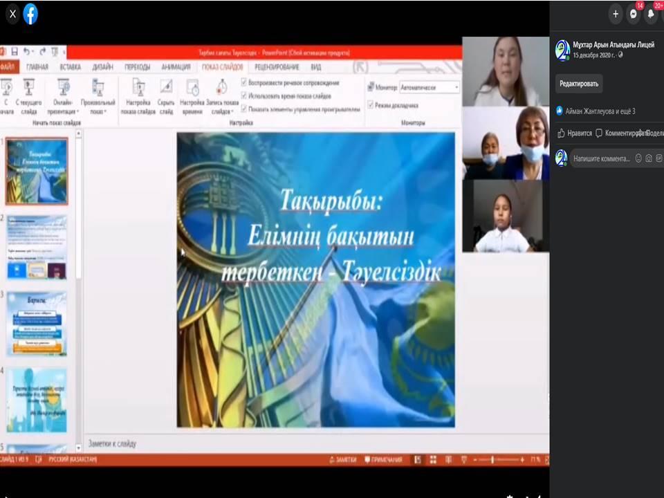 Тәуелсіздік күніне орай 7Г, 7В сыныптарында өткізілген тәрбие сағаттары
