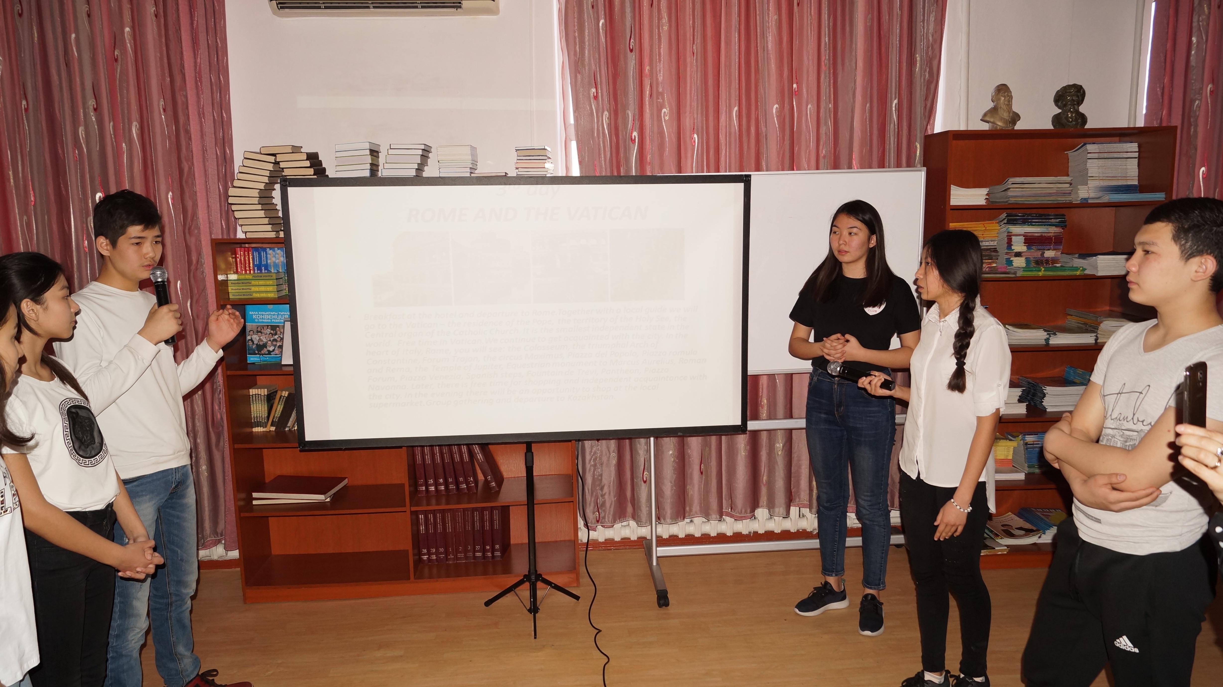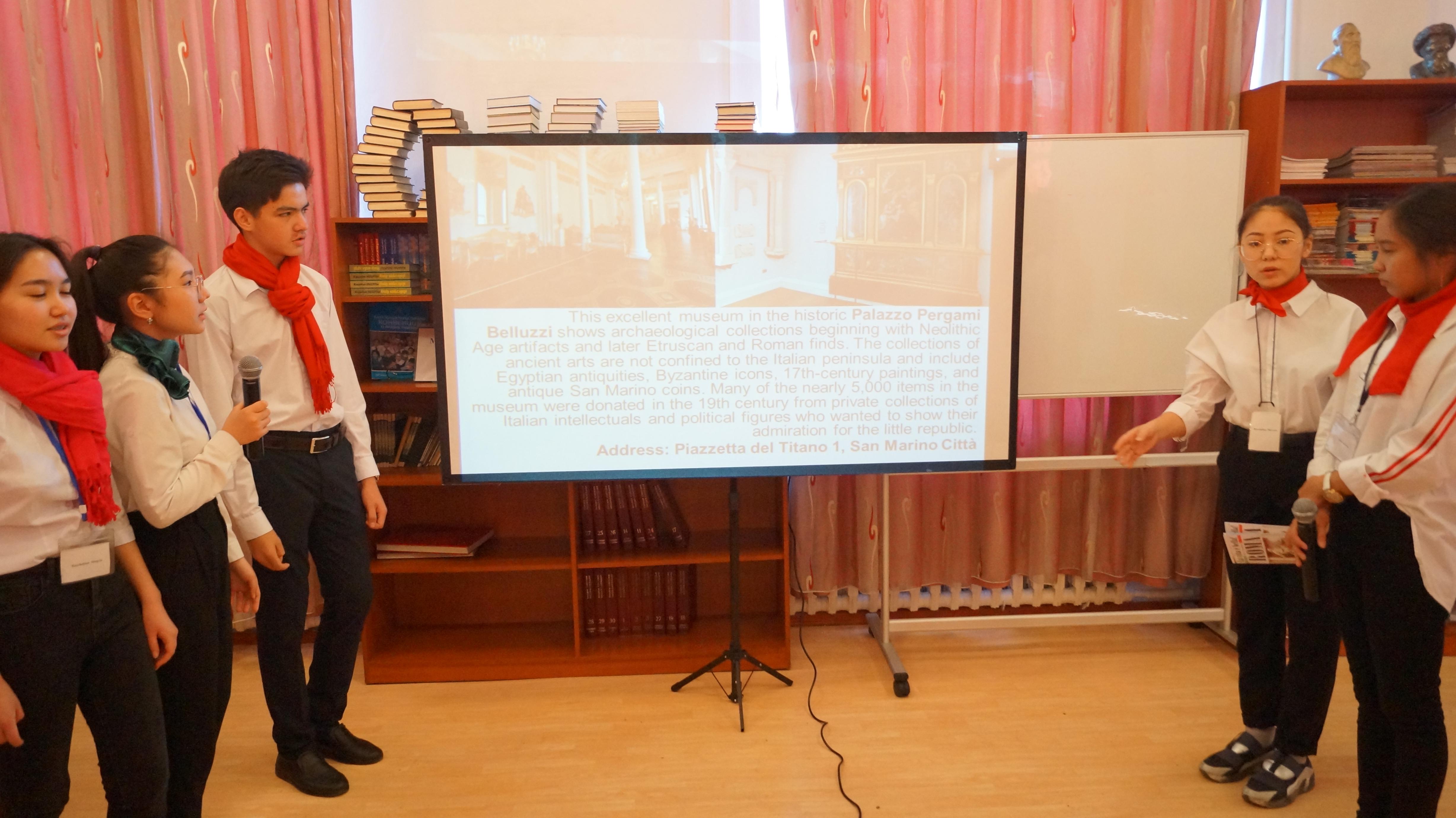 Бүгін, 29 наурыз күні №24 лицей оқушылары сағат 9:00-11:00 уақыт аралығында онлайн режимде Халықаралық "IMT class” жобасы тапсырмасын қорғап шықты. Жоба мақсаты – шәкірттеріміздің 4 апта бойы жинақтаған теориялық білімдерін тәжірибеде көрсету. 25 оқушыдан тұратын жоба мүшелері 5 командаға бөлініп, әр топ «Туристік агенттік» ретінде 15 минуттық таныстырылым жасады. Таныстырылымның талаптарына сәйкес шәкірттеріміз ағылшын тілінде «агенттіктің» жұмысын көрсетті.
