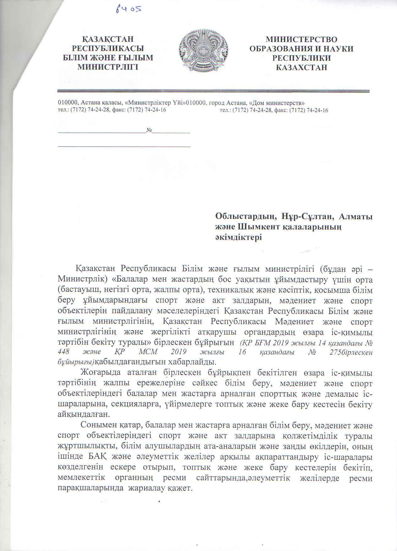 » Қазақстан Республикасының Білім және ғылым министірлігі